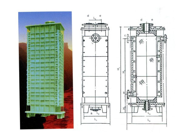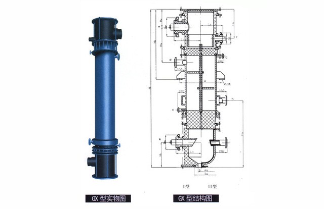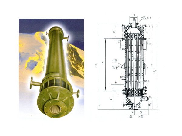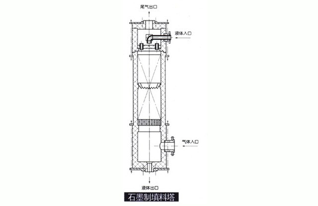 GX型系列列管式石墨降膜吸收器之吸收換熱元件為不透性石墨管,成膜條件極佳,故吸收效率高(與尾氣搭配合吸收率可達99%)生產(chǎn)強度大 CQ22/932X3000單管日產(chǎn)量可達0.8-1.2t33%鹽酸/天),且調(diào)節(jié)范圍大,產(chǎn)品不受污染,純度好,主要用于吸收Hcl氣制鹽酸。也可處理含Hcl、S02、NH2, HF、P2O5,H2S等氣體之尾氣,既回收某些成分 ,制取副產(chǎn)品減少或消除環(huán)境污染。本設 備之氣