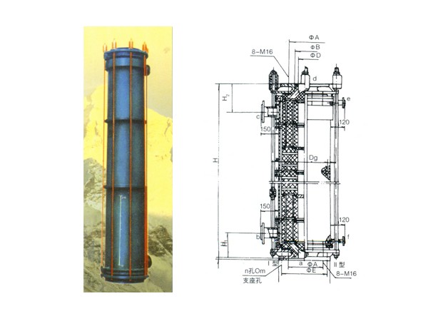 該系列采用聚四氟乙烯密封且加裝壓力彈簧 作熱脹冷縮自動補償裝置。在石墨塊上鉆有兩組不相通的流道,且這兩組之間成直角,兩種不同流體通過這兩組流道達到熱交換的目的。該系列采用先進的加工工藝,具有傳熱效率高、穩(wěn)定可靠、抗沖擊和檢修方便等優(yōu)點。最大換熱面積可達800平方米。技術(shù)特性:許用溫度:-4℃?220℃許用壓力:<0.4MPa管口表