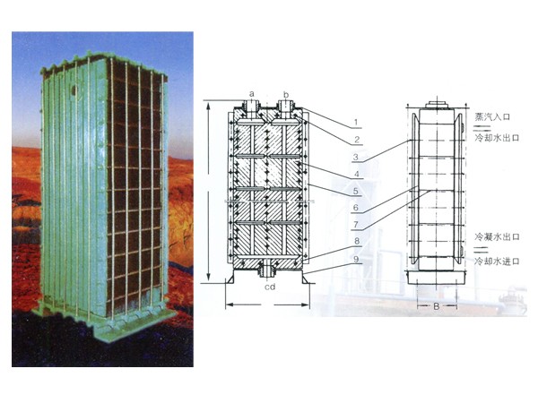 結(jié)構(gòu)與特點:結(jié)構(gòu)簡單、緊湊,流體阻 力小??芍圃熳畲髶Q熱面積達1000平方米的換熱器。主要用于冷卻或冷凝,亦可根據(jù)用戶提供圖紙或代為設計制造特殊規(guī)格的產(chǎn)品。技術(shù)特性:許用溫度:作加熱器≤120℃作冷卻器-30?130℃許用壓力:管程<0.2MPa殼程 <0.3MPa
